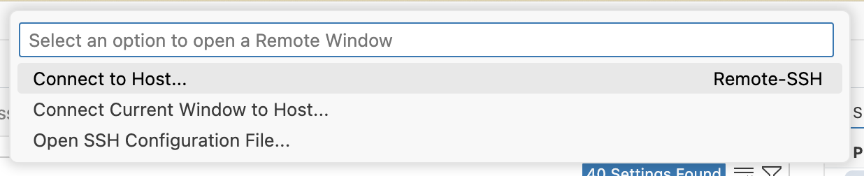 To create a connection, open the Command Palette with and type “Remote Menu”. Run the Remote SSH: Show Remote Menu command.